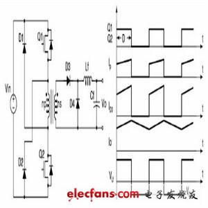 圖1 雙管正激變換器原理圖與波形