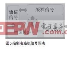 大功率DC/DC變換器控製電路主要由電源模塊、采樣信號、通訊信號以及驅動模塊組成,為防止相互間信號幹擾,在設計電路的時候將其隔離,如圖5所示。