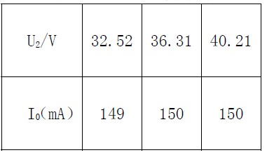 從32V~40V 時電流變化範圍是149mA~150mA 調整率為0.6%,電壓調整率Su≤1%,達到要求。