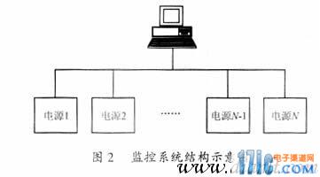 主從總線1∶N通信方式可以采用多種通信協議實現總線使用權的分配,本係統中使用的地址查詢方式,主從總線1∶N通信方式的監控係統結構示意圖如圖2所(suo)示(shi)。係(xi)統(tong)給(gei)每(mei)個(ge)電(dian)源(yuan)分(fen)配(pei)唯(wei)一(yi)的(de)一(yi)個(ge)地(di)址(zhi)號(hao),計(ji)算(suan)機(ji)分(fen)配(pei)一(yi)個(ge)固(gu)定(ding)的(de)地(di)址(zhi)號(hao)。當(dang)計(ji)算(suan)機(ji)需(xu)要(yao)和(he)某(mou)台(tai)電(dian)源(yuan)建(jian)立(li)通(tong)信(xin)時(shi),計(ji)算(suan)機(ji)發(fa)出(chu)一(yi)個(ge)含(han)有(you)該(gai)電(dian)源(yuan)地(di)址(zhi)號(hao)的(de)請(qing)求(qiu)命(ming)令(ling)包(bao)。掛(gua)在(zai)總(zong)線(xian)上(shang)的(de)所(suo)有(you)電(dian)源(yuan)一(yi)直(zhi)處(chu)於(yu)等(deng)待(dai)接(jie)收(shou)數(shu)據(ju)狀(zhuang)態(tai),計(ji)算(suan)機(ji)所(suo)發(fa)出(chu)的(de)請(qing)求(qiu)命(ming)令(ling)包(bao)將(jiang)被(bei)所(suo)有(you)的(de)電(dian)源(yuan)所(suo)接(jie)收(shou)。每(mei)個(ge)電(dian)源(yuan)將(jiang)接(jie)收(shou)到(dao)的(de)請(qing)求(qiu)命(ming)令(ling)包(bao)中(zhong)所(suo)包(bao)含(han)的(de)電(dian)源(yuan)地(di)址(zhi)號(hao)與(yu)本(ben)模(mo)塊(kuai)的(de)地(di)址(zhi)號(hao)相(xiang)比(bi)較(jiao),隻(zhi)有(you)地(di)址(zhi)號(hao)與(yu)計(ji)算(suan)機(ji)所(suo)發(fa)出(chu)的(de)請(qing)求(qiu)命(ming)令(ling)包(bao)中(zhong)所(suo)包(bao)含(han)的(de)地(di)址(zhi)號(hao)相(xiang)同(tong)的(de)電(dian)源(yuan)才(cai)與(yu)計(ji)算(suan)機(ji)建(jian)立(li)通(tong)信(xin),響(xiang)應(ying)計(ji)算(suan)機(ji)所(suo)發(fa)出(chu)的(de)請(qing)求(qiu)命(ming)令(ling)。其(qi)它(ta)地(di)址(zhi)號(hao)不(bu)相(xiang)同(tong)的(de)電(dian)源(yuan)將(jiang)拒(ju)絕(jue)響(xiang)應(ying)計(ji)算(suan)機(ji)的(de)請(qing)求(qiu)命(ming)令(ling),繼(ji)續(xu)保(bao)持(chi)接(jie)收(shou)數(shu)據(ju)狀(zhuang)態(tai),等(deng)待(dai)響(xiang)應(ying)計(ji)算(suan)機(ji)發(fa)出(chu)的(de)下(xia)一(yi)個(ge)請(qing)求(qiu)命(ming)令(ling)包(bao)。係(xi)統(tong)中(zhong)的(de)這(zhe)種(zhong)地(di)址(zhi)查(zha)詢(xun)方(fang)式(shi)實(shi)現(xian)了(le)任(ren)何(he)時(shi)候(hou)總(zong)線(xian)上(shang)最(zui)多(duo)隻(zhi)有(you)一(yi)台(tai)電(dian)源(yuan)與(yu)計(ji)算(suan)機(ji)通(tong)信(xin),其(qi)它(ta)電(dian)源(yuan)處(chu)於(yu)等(deng)待(dai)接(jie)收(shou)數(shu)據(ju)狀(zhuang)態(tai),從(cong)而(er)有(you)效(xiao)地(di)避(bi)免(mian)了(le)總(zong)線(xian)使(shi)用(yong)權(quan)的(de)衝(chong)突(tu)。