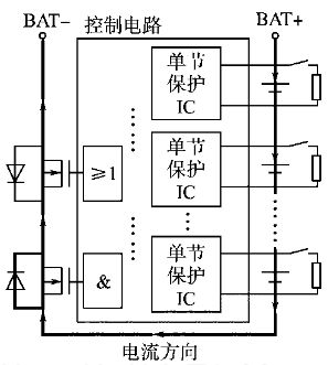 當電池組放電時,外接負載分別接電池組正負極BAT+和BAT-兩端,放電電流流經電池組負極BAT-、充電控製開關器件、放電控製開關器件、電池組中單節鋰電池N~1和電池組正極BAT+,電流流向如圖4所示。係統中控製電路部分單節鋰電池保護芯片的放電欠電壓保護、過流和短路保護控製信號經光耦隔離後串聯輸出,為主電路中放電開關器件的導通提供柵極電壓;yidandianchizuzaifangdianguochengzhongyudaodanjielidianchiqiandianyahuozheguoliuheduanludengteshuqingkuang,duiyingdedanjielidianchifangdianbaohukongzhixinhaobiandi,wufaweizhudianluzhongdefangdiankongzhikaiguanqijiantigongzhajipianya,shiqiguanduan,zhuhuiluduankai,jijieshufangdianshiyongguocheng。
