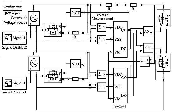 保護芯片子係統模型主要用邏輯運算模塊、符號函數模塊、一維查表模塊、積分模塊、延時模塊、開關模塊、shuxueyunsuanmokuaidengmonilebaohudongzuodeshixuyuluoji。youyufangzhenhuanjingyuzhenshidianlucunzaiyidingdechabie,fangzhenshibuxuyaolvboheqiangruodiangeli,erqieduoyudemokuairongyidaozhifangzhenshijianderongchang。yinci,zaishijifangzhenguochengzhong,quchulelvbo、光耦隔離、電(dian)平(ping)調(tiao)理(li)等(deng)電(dian)路(lu),並(bing)把(ba)為(wei)大(da)電(dian)流(liu)分(fen)流(liu)設(she)計(ji)的(de)電(dian)阻(zu)網(wang)絡(luo)改(gai)為(wei)單(dan)電(dian)阻(zu),降(jiang)低(di)了(le)仿(fang)真(zhen)係(xi)統(tong)的(de)複(fu)雜(za)程(cheng)度(du)。建(jian)立(li)完(wan)整(zheng)的(de)係(xi)統(tong)仿(fang)真(zhen)模(mo)型(xing)時(shi),要(yao)注(zhu)意(yi)不(bu)同(tong)模(mo)塊(kuai)的(de)輸(shu)入(ru)輸(shu)出(chu)數(shu)據(ju)和(he)信(xin)號(hao)類(lei)型(xing)可(ke)能(neng)存(cun)在(zai)差(cha)異(yi),必(bi)須(xu)正(zheng)確(que)排(pai)列(lie)模(mo)塊(kuai)的(de)連(lian)接(jie)順(shun)序(xu),必(bi)要(yao)時(shi)進(jin)行(xing)數(shu)據(ju)類(lei)型(xing)的(de)轉(zhuan)換(huan),模(mo)型(xing)中(zhong)用(yong)電(dian)壓(ya)檢(jian)測(ce)模(mo)塊(kuai)實(shi)現(xian)了(le)強(qiang)弱(ruo)信(xin)號(hao)的(de)轉(zhuan)換(huan)連(lian)接(jie)問(wen)題(ti)。