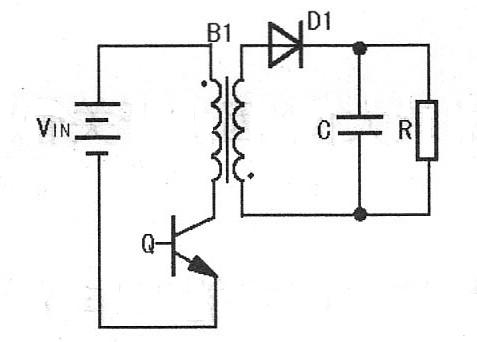 反激型PFC電路如圖5所示,當開關管Q導通時,輸入電壓加到高頻變壓器B1的原邊繞組上,由於B1副邊整流二極管D1反接,副邊繞組中沒有電流流過,此時,電容C放電向負載提供能量。當開關管Q關斷時,繞組上的電壓極性反向,二極管D1正偏導通,儲存在變壓器中的能量通過二極管D1向負載釋放。