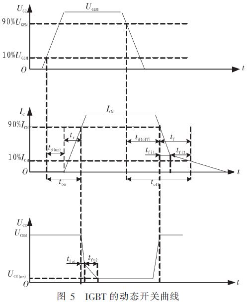 根據調製器的要求,由單片機輸出一定重複頻率的觸發脈衝經接口保護電路轉換後驅動IGBT的柵極。IGBT在柵極有驅動時接通,無驅動時關斷,實現了可控的開關功能。IGBT的動態開關曲線如圖5所示。