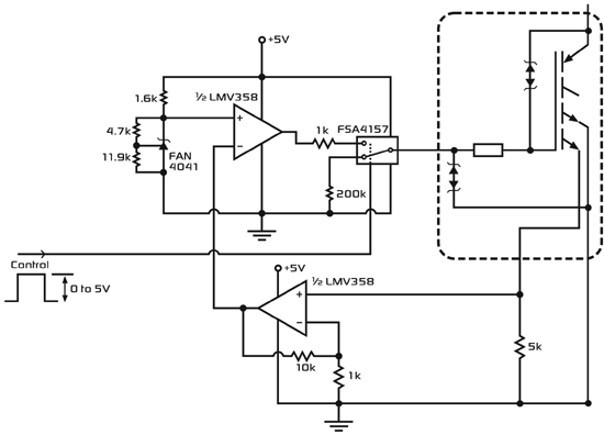 控製裸片和IGBT結合在多引腳的TO-220或TO-263封裝中。IGBT焊接在封裝件的管座(header)上,以最大限度降低IGBT與封裝件間的電阻和熱阻。控製裸片用絕緣的聚酰亞胺材料粘貼在同一管座上,使其與IGBT的高壓集電極隔離。