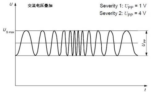 供電電壓瞬間下降:模擬其他電路內的典型熔絲熔斷時造成的影響。注意試驗脈衝的上升和下降時間 ≤10 ms。