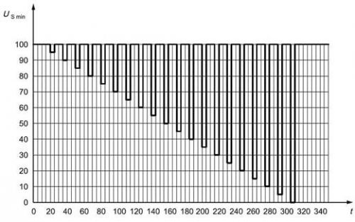 電壓驟降複位性能:檢驗電壓驟降的情況下,模塊的複位性能,適用於具有複位功能的設備。供電電壓以5 %速率從USmin 降到 0.95 USmin,保持5 s,再上升到USmin ,至少保持10 s並進行功能試驗。然後將電壓降至0.9 USmin等,以USmin的5%梯度繼續進行直到降到0V,然後再將電壓升到USmin。