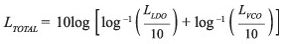以dB表示時,用於計算電源噪聲引起的相位噪聲貢獻的公式如下: