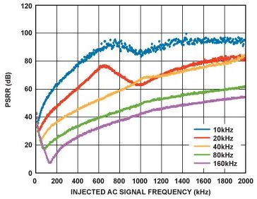 在PLL係統中,較高的VCO推壓意味著VCO電源噪聲的增加倍數更大。為盡可能降低對VCO相位噪聲的影響,需要低噪聲電源。