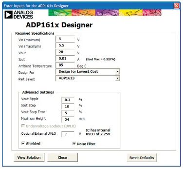 圖8.ADP1613升壓轉換器EXCEL設計工具