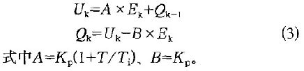 式中Uo-- 初始值;Uk - - 第k次采樣點獲得的控製量;Ek--第k次采樣點獲得的偏差量;Ej--第j次采樣點的偏差值;k一第k次采樣點。