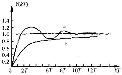 恒偏差法和有效偏差法相類似。有效偏差法又叫逆算法。即當控製量Uk越限時,Uk取邊界值Umax或Umin.由該邊界值逆算出偏差值Ek''代替原來的偏差值Ek.然而,在恒偏差法中,是用經過衰減後的Ek''去代替Ek.係統在階躍響應時,實際工作在過阻尼狀態,從而減緩了在起、停時對主電路器件的衝擊。圖3示出兩種算法的階躍輸入響應曲線。其中曲線(a)標準PI算法響應曲線、曲線(b)恒偏差法響應曲線。