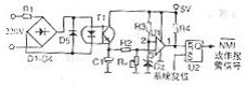 一個實用的掉電檢測電路如圖10所示。220 V交流電流經橋式整流後驅動光電隔離管T1(TLP521)中的發光二極管發光,並使T1的光電三極管導通,給電容C1充電。C1上的電壓經過R2,Rw分壓後送到比較器U1(LM393)正極性輸入端。當交流電正常工作時,調節電位器Rw使U1的“+”輸入端的電壓比“-”輸入端(穩壓管Dz的值)略高0.2 V左右,則U1輸出高電平,觸發器不翻轉,其Q端輸出高電平。當交流掉電時,C1不能被充電其電壓將很快下降。於是,比較器U1輸出低電平,觸發RS觸發器U2fanzhuan,chanshengfeipingbizhongduanshenqingxinhao。ruguozaifeipingbizhongduanfuwuchengxuzhong,bayouweixiandekongzhijigoutiaodaoqianquandeweizhi,bingqiebaocundangqianyunxingdezhongyaoshujuhejicunqidezhuangtai,zhejiuwanchenglediaodianchuli。tongchang,youyuzhiliukaiguandianyuanjuyoujiaodadeshurudianrongqi,yincicongjiancedaojiaoliudiaodianqi,daozhiliushidianjisuanjibunenggongzuoshiweizhi,haiyou10 ms以上的時間,足夠完成掉電處理操作。