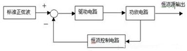 本文采用了數字式信號發生器產生標準正弦波和電流負反饋法產生精確交流恒流源法, 交流恒流源實現原理如圖2所示。