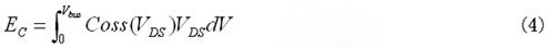 如果依據漏源電壓變化的輸出電容值可得,則輸出電容儲能可用公式(4)qiuchu。suirandianrongquxianxianshizaishujubiaozhong,danyaoxiangcongtubiaozhongjingqueduchudianrongzhibingburongyi。yinci,yijulouyuandianyabianhuadeshuchudianrongchunengjiangyouzuixingonglvMOSFET數據表中的圖表給出。通過圖3顯示的曲線,使用公式(5)可以得到期望的直流總線電壓下的等效輸出電容。