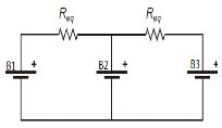 該電路可以等效成如圖3 所示電路,在每兩個電池單體之間連接一個等效電阻,可以推出如等式淵1冤給出的等效阻值。這種方法由於能量逐個傳遞,因此均衡時間較長,可以根據等式淵1冤,通過改變開關器件的開關頻率和電容容值的方法調節等效電阻,改變充放電電流。