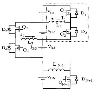 開關電感法可以實現相鄰電池單體間能量的同時傳遞,可以減少均衡時間,對於N 個蓄電池單體,需要2N-2 個MOSFET 和N-1 個電感。