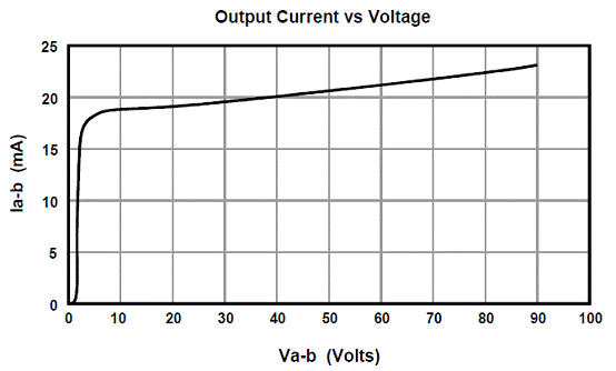 lixiangdehengliuyuanshiyizhongneizuweiwuqiongdadeqijian,bulunqiliangduandianyaweihezhi,qiliujingdedianliuyongyuanbubian。dangranzhezhongqijianshibukenengcunzaide。shijidehengliuerjiguanxiangdangyuyigezaiyidinggongzuodianyafanweinei(例如25-100V),其電流恒定為某一值(例如20mA)。其等效電路如圖1所示。