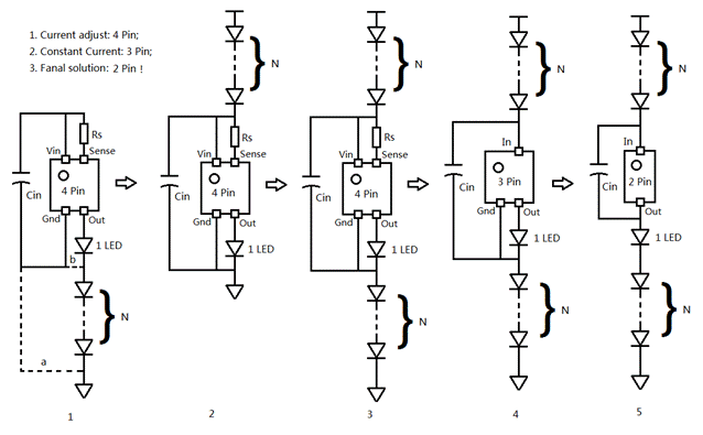 其中4條管腳的恒流二極管主要用於可調恒流電流。