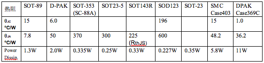 由表中可見,On-semi公司的NSI50350ADT4G所采用的D-PAK具有最小的熱阻,其耗散功率高達11W。不過如果整個係統設計於這樣高的耗散功率也說明其效率不高,是需要避免的。