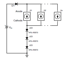 最簡單的方法就是和恒流二極管串聯一個齊納二極管來提高耐壓(圖15)。