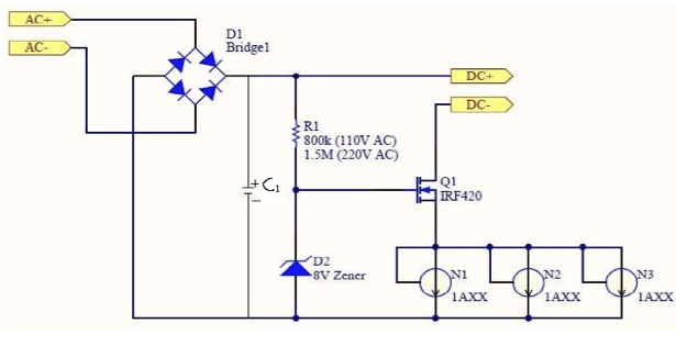 有you不bu少shao現xian成cheng的de恒heng流liu二er極ji管guan的de耐nai壓ya往wang往wang不bu夠gou高gao,當dang然ran最zui簡jian單dan的de方fang法fa就jiu是shi用yong兩liang個ge或huo幾ji個ge恒heng流liu二er極ji管guan串chuan聯lian。同tong樣yang這zhe樣yang成cheng本ben就jiu會hui增zeng高gao。也ye可ke以yi用yong增zeng加jia一yi些xie其qi它ta器qi件jian來lai提ti高gao。