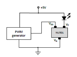 采用PWM信xin號hao調tiao光guang以yi後hou可ke以yi避bi免mian由you於yu改gai變bian電dian流liu而er引yin起qi的de光guang譜pu偏pian移yi。但dan是shi不bu能neng采cai用yong隻zhi有you兩liang條tiao管guan腳jiao的de恒heng流liu二er極ji管guan,而er必bi須xu采cai用yong帶dai有you控kong製zhi開kai斷duan管guan腳jiao的de至zhi少shao3條管腳的恒流二極管