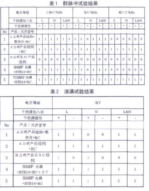 (4) 不同的光耦和不同的可控矽組合對EMC 性能也有較大影響;