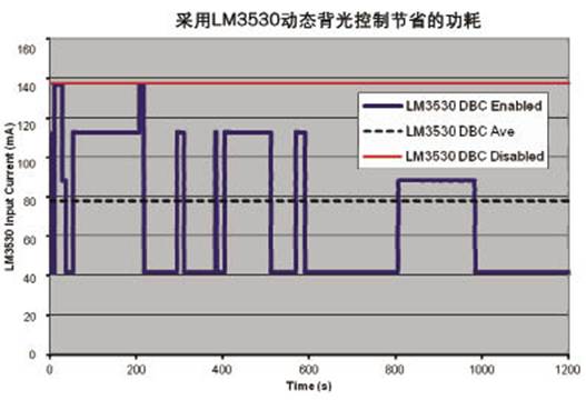 圖4 采用LM3530動態背光控製節省的功耗