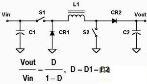 qudongfanganjiandanshizhegedianludeyoudian,danshixiaolvchadequedianjingchangfangaitadeshiyong。youyutongshiqudonglianggekaiguan,erqiedangshurudianyadengyushuchudianyashi,zhankongbiD為50%,使得過多能量在轉換器中循環。例如當Vin=Vout(而且D=50%)時,電感L1兩次導通輸入(輸出)電流。在輸入端,S1在50%的時間內接通,強迫它兩次導通平均輸入電流,當然,這個電流來自L1;與之類似,在輸出端,CR2在50%的時間內導通,再次從電感獲得電流。確實在它們導通時,所有四個開關元件(S1、CR1、S2和CR2)兩次導通輸入-輸出電流,結果造成較大功率損耗,使這個電路在四個電路中效率最低,但它無疑是很簡單的,可用於小電流應用中。