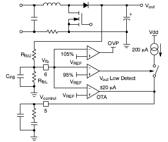 2. 快速瞬態響應/過壓保護(OVP):當VFB > 105% VPREF時,過壓保護激活,驅動器輸出變為低電平;當VFB低於103.2% VPREF時,器件自動恢複工作。