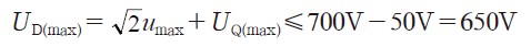 為安全起見,U D ( max)至少應比漏-源極擊穿電壓7 00V留出5 0V的餘量。這其中還考慮到P6KE200具有0.108%/℃的溫度係數,當環境溫度T A=25℃時,U B=200V;當T A=100℃時,UB=200V×[(1+0.108)%/℃]×100℃=221.6V,可升高21.6V。