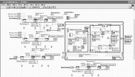 圖5是光伏發電數據監測係統前麵板對應的部分程序框圖,主要包括電壓采集、電流采集、輻照度采集、溫度采集及其處理程序。