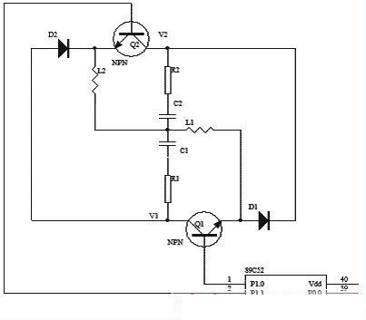 本實驗中,選用兩個小功率NPN管C1815(Q1、Q2)來替代開關管,用89C51芯片的P1.0和P1.1腳控製Q1、Q2的開關。同時,蓄電池的端電壓V1和V2由差動放大電路采集,經A/D轉換送到CPU。在整個過程中,電壓每20ms采樣一次,每隔1s上傳上位機並保存並自動繪製曲線。圖5為試驗電路圖。
