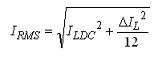 針對我們的情況,VOUT=VLED+300mV,且效率大約為90%。這可以算出PFET占空比(1-D)為83%,NFET占空比為17%。RMS電感電流等式為: