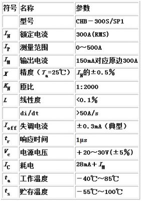 閉環霍爾電流傳感器的應用範圍很廣,目前已成功地應用於逆變焊機,發電及輸變電設備,電氣傳動,數控機床等工業產品上。表1以額定電流為300A的CHB-300S型霍爾電流傳感器為例,說明這種傳感器的應用。
