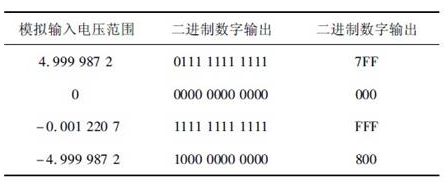 MAX1272 是具有故障保護、可通過軟件選擇輸入範圍的12 位串行模擬數字轉換器,使用SPI 三線通信協議,+ 5 V 供電,模擬輸入電壓範圍0 ~ 10 V,0 ~ 5 V,± 10 V,± 5 V.內部自帶+ 4. 096 V 參考電壓。當采用內部+ 4. 096 V 參考電壓時,理想情況下模擬電壓輸入對應的數字輸出,如表1 所示。