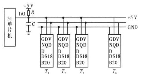 zhenduichuanliandianchizu,chuantongdecewenfangfaduocaiyongmoniwenduchuanganqijinxingceliang,zaishujudecaijihechuanshuguochengzhongyishouwaijiehuanjingdeganrao,congershicededejieguowuchajiaoda,qiedangceliangdianjiaoduoshi,lianxianjiaofuza。wenzhongcaiyongdanpianjihedanzongxianshuzishiwenduchuanganqiDS18B20 來解決上述問題。其原理如圖5 所示。