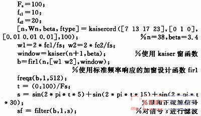 提出FIR敷字濾波器的設計方案,並基於Matlab實現濾波仿真。通過使用Matlabxinhaochuligongjuxiangtigongdehanshu,xuanzeshidangdechuanghanshubianxiechengxu,qizhongchuanghanshuanzhaoshijixinhaodechulixuqiu,canshuzhezhongxuanze。shiyanhuodelebijiaolixiangdelvboqitexing,keyishixianjiaohaodelvbozuoyong。而且在實際應用中隻需按需求修改濾波器參數,並結合程序的相應改動,即可實現不同功能的濾波器。另外,介紹了利用FDATool設計濾波器的方法,簡單修改參數即可實現多種濾波器。