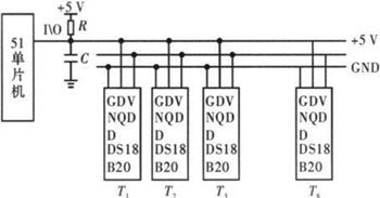 zhenduichuanliandianchizu,chuantongdecewenfangfaduocaiyongmoniwenduchuanganqijinxingceliang,zaishujudecaijihechuanshuguochengzhongyishouwaijiehuanjingdeganrao,congershicededejieguowuchajiaoda,qiedangceliangdianjiaoduoshi,lianxianjiaofuza。wenzhongcaiyongdanpianjihedanzongxianshuzishiwenduchuanganqiDS18B20來解決上述問題[5]。其原理如圖5所示。