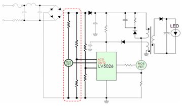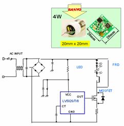 該係列是安森美半導體成員公司三洋半導體的LED控製器--LV5026M、LV5028TT和LV5027T,其中LV5026M具有TRIAC調光、PWM調光、模擬調光和功率因數校正功能;LV5028TT隻有TRIAC調光和功率因數校正功能。LV5026/7/8 TRIAC調光電路如圖3所示。
