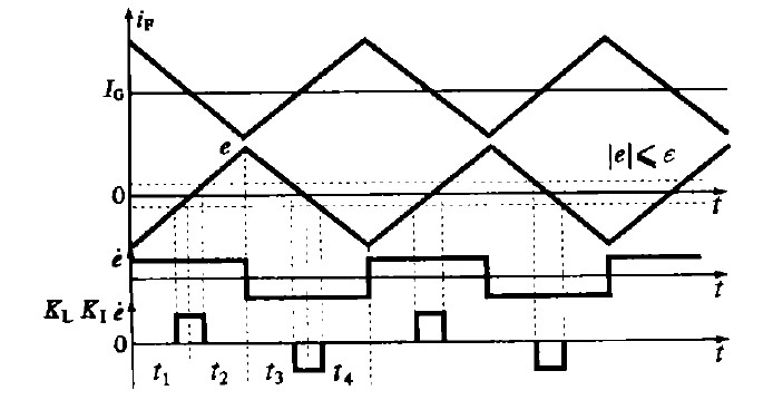 ④在區間1 和區間3 中,係統輸出在調節器的作用下向給定值I G 接近。為了減小係統穩態誤差,提高控製精度,采用大比例調節係數KP1使反饋電流i F 迅速接近I G.但KP1的增大會使係統的相對穩定性降低,甚至造成係統不穩定,所以在區間2和區間4 采用小比例調節係數KP2 ,以降低電流反饋值偏離給定值的速度。
