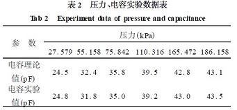 1可見,擬合的電容誤差小於1%。由此可見,在不同的時刻測得UO(t),通過曲線擬合得出參數RC。再給電路加小信號直流電源,測出R值,即求得C,通過C值則可知被測環境的壓力。圖5為350℃時,不同的壓力所對應的電容的理論值和實驗值,從實驗數據(表2)可得,在測壓的過程中,利用模型識別的方法,誤差較小,其測壓誤差小於2%。