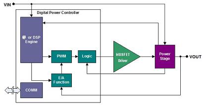 圖1是數字控製電源的典型實施方案。圖中左側數字電源控製器通常的工作電壓為3.3V。由於控製器設計中采用了數字低電壓處理方法,出於對穩定性及噪聲的考慮,不能直接使用該數字控製器驅動MOSFET。控製器與功率級之間的接口由MOSFET驅動器提供。通常由MOSFET驅動器接收PWM或數字控製器的輸出信號,然後將其轉換為適於高效開、關MOSFET的高電流信號。如果控製器信號受到幹擾或出錯,則普通MOSFET驅動器將無法提供任何保護功能。TI推出的UCD7K係列MOSFET驅動器將能夠保護功率級免受因幹擾驅動信號而導致的重大故障。MOSFET驅動器內置的超高速電流感應比較器提供了功率級保護。圖2為相關結構圖。