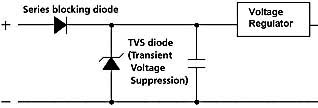 為了保護電子模塊不因蓄電池極性接反而損壞,常用的解決方案是使用一個正向導通(整流)二極管來防止電流反向流動(見圖1)。