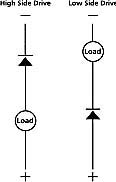 對於將大功率MOSFET用於各種負載的固態開關動作的電子模塊,其他極性接反的情況主要集中在驅動配置的高壓側或低壓側(見圖3a)。在極性接反的狀態下,大功率MOSFET的內在二極管變為正向偏置,並允許電流能夠流至與其連接的電機、燈或電磁閥負載(見圖3b)。