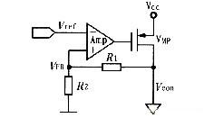 間接閉環控製環路如圖1所示,該控製環路包括一個誤差放大器,反饋環路和調整管(VMP管)。工作原理是由誤差放大器將輸出反饋電壓VFB與參考電壓Vref進行比較,並放大其差值(Vref-VFB)以此來控製調整管(VMP)的導通狀態,實現負反饋,從而得到穩定的輸出Vcon。電路剛啟動時,反饋電壓VFB很低,如果穩壓器啟動時產生較大的電容(或者負載電容很大)或VMP管導通時有較小的電阻,浪湧電流(即流過VMP管的瞬間電流)jiuhuihenda,youshihuijiejinwenyaqidedianliuxianzhi。yinci,bixuzaiwuchafangdaqizhongshejiruanqidongdianlu,yibaozhengzhenggedianluzaishangdianhoujinruzhengchangdezhiliupianzhizhuangtai,buhuichanshenglangyongdianliu。