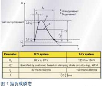 幾乎所有直接連接至汽車電池的電子組件和電路都要求保護,以免於受到抑製、瞬態電壓(高達60V)和he反fan向xiang電dian壓ya狀zhuang態tai的de損sun害hai。對dui於yu這zhe些xie電dian子zi電dian路lu而er言yan,必bi須xu能neng夠gou經jing受shou住zhu電dian源yuan線xian路lu上shang一yi定ding程cheng度du的de過guo電dian壓ya,這zhe也ye是shi種zhong常chang見jian的de要yao求qiu。對dui於yu那na些xie要yao求qiu任ren何he特te殊shu車che載zai電dian子zi係xi統tong的de主zhu電dian源yuan輸shu入ru均jun能neng夠gou在zai各ge種zhong不bu同tong瞬shun態tai電dian壓ya狀zhuang態tai(包括交流發電機拋負載)下工作的車載係統來說尤為如此。
