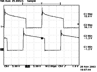 本文所設計的驅動電路簡單可行,驅動波形比較理想:有快速的上升沿,並在一開始有一定的過衝,可以加速開通,減小了開通損耗;同時,有反偏截止電壓,提供了足夠的反相門極驅動,減小了下降時間。