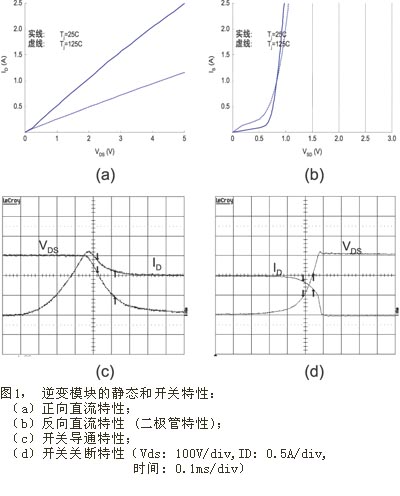 對於小型電機驅動係統,MOSFET在功耗、成本和性能方麵較其它功率開關管更具優勢。MOSFET的正向特征電阻為歐姆級 (見圖1(a)) ;其導通損耗與漏極電流的平方成正比,當漏極電流低於1A時,其導通損耗低於額定功率相同的IGBT的導通損耗,這是因為IGBT在通態時存在閾值電壓,該電壓隨逆變輸出功率的下降而顯著增加。大多數空調使用的風扇電機功率在50W以下;在這個功率級別上,基於MOSFET的逆變器的效率高於IGBT。